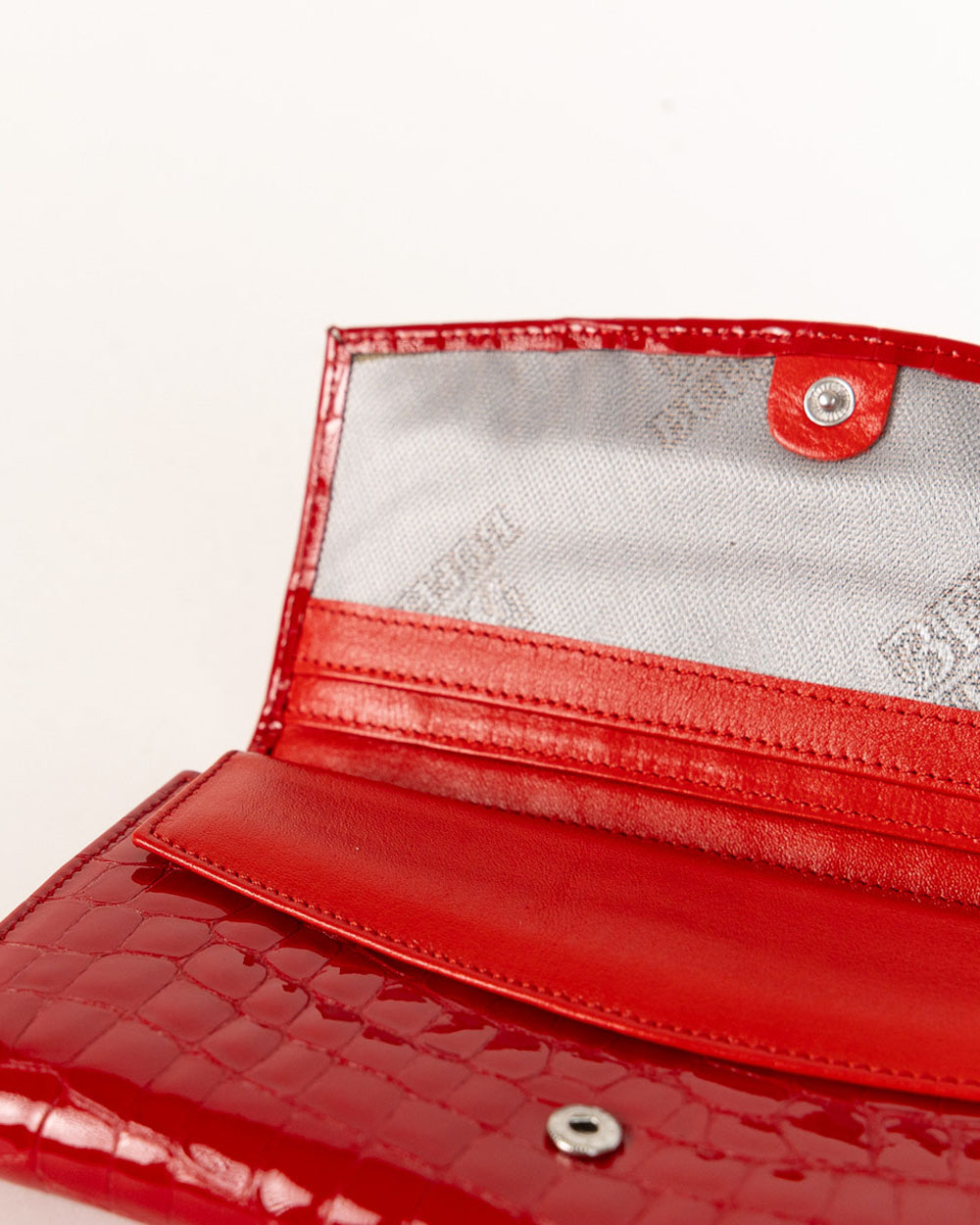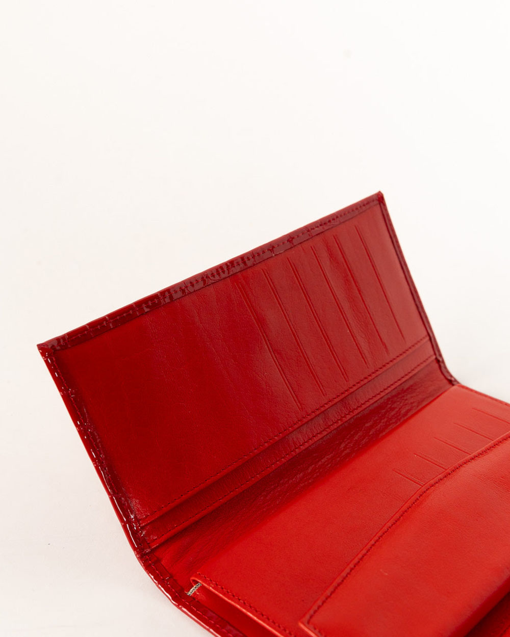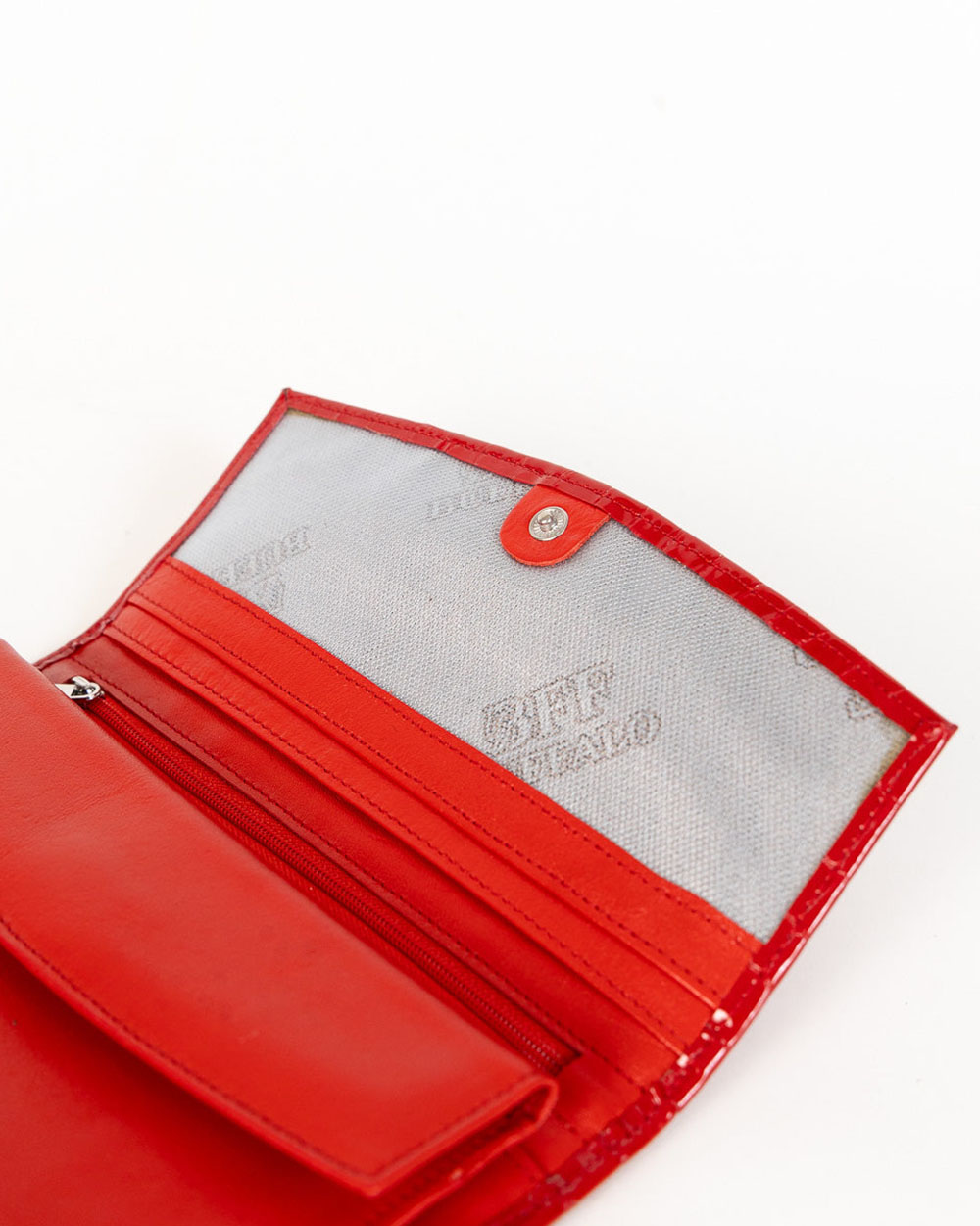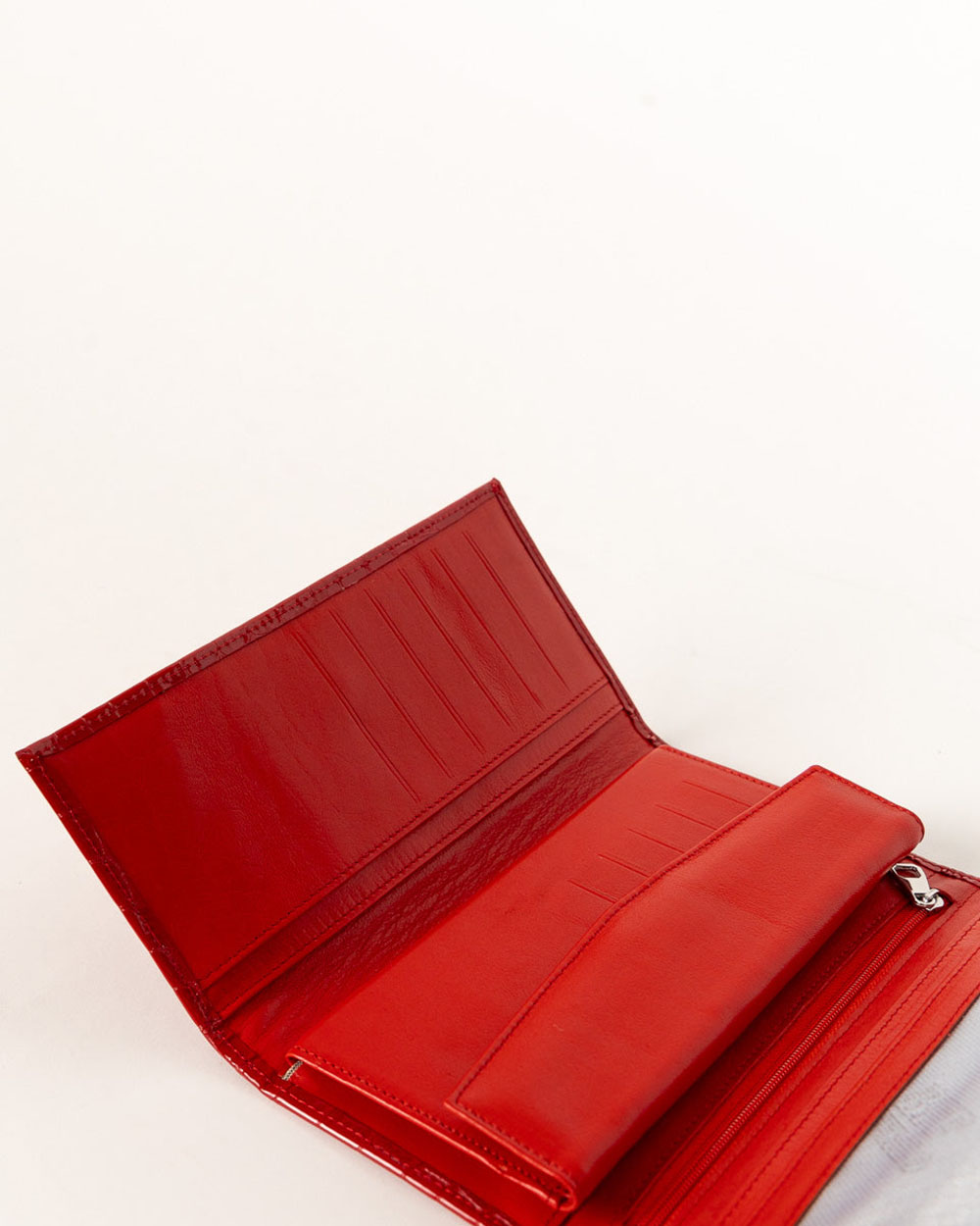 Dimenzije (cm): 19 x 11 Elegantni novčanik od krokodilske kože, izrađen s pažnjom na detalje, nudi savršen spoj luksuza i funkcionalnosti. Otvara se dvostrukom bravicom koja pruža dodatnu sigurnost. Unutrašnjost je pažljivo dizajnirana s brojnim pregradama za papirni novac, kartice i slike, kao i zasebnom pregradom sa rajsferšlusom za sitni novac. Ovaj novčanik je idealan izbor za žene koje traže sofisticiranost i praktičnost u jednom jedinstvenom dizajnu.