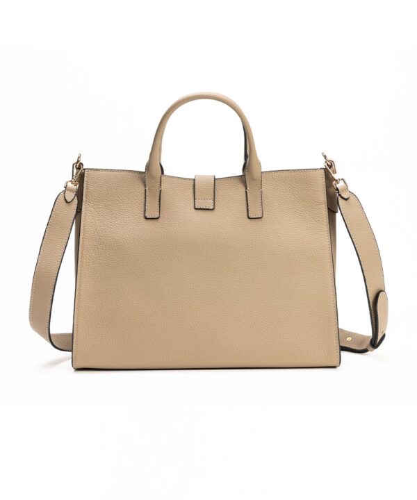 Neutralna i moderna, ova tašna ima širinu 32 cm i dužinu 59 cm (sa kaišem), što je čini idealnom za svakodnevnu upotrebu. Funkcionalnost dodatno upotpunjuje odvojivi neseser dimenzija 28 × 15 cm, sa podesivim kaišem do 125 cm, koji omogućava više načina nošenja.